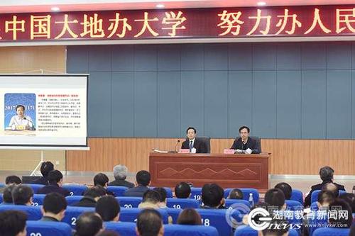 本网讯(通讯员 熊玲芝 摄影 何帅文)12月6日下午,湖南省社科联党组书记、副主席宋智富以“深入学习贯彻党的十九大精神 奋力建设富饶美丽幸福新湖南”为主题,来星空app官网宣讲十九大精神。宣讲会由党委书记陈弘主持。党委副书记、校长曾宝成及在校领导宋宏福、彭立威、郑山明、李常健、吴小林、程智开,永州市社科联主席陈水恩等参加了这次宣讲会。