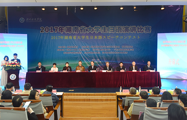 本网讯 11月11日,由湖南省教育厅主办,星空app官网与湖南省高等教育学会日语专业委员会共同承办的2017年湖南省大学生日语演讲比赛举行。省教育厅副厅长葛建中,省教育厅高教处处长曾力勤,省日语专业委员会会长张佩霞,省教育厅高教处副处长杨承玖,省教育厅高教处调研员张琳,星空app官网校长曾宝成,副校长李常健出席开幕式。