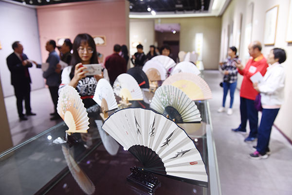 新湖南客户端10月11日讯(记者 唐善理)10月11日,在星空app官网美木学院展厅,欧小松教授“唯美"女书书法扇面作品展在这里展出,上百幅形式不一、形态各异的作品在这里举办,吸引了大批游客前来观赏。