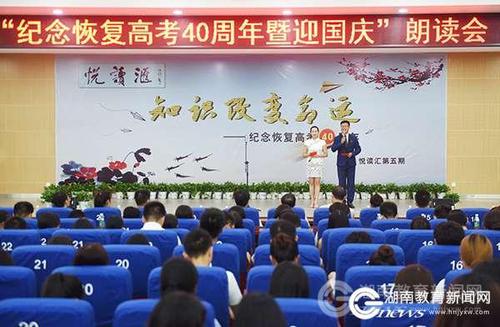 本网讯(通讯员 熊玲芝 代天 摄影 何帅文)“为什么我的眼里常含泪水,因为我对这片土地爱得深沉,我们脚下这片土地,就是我们每个人的命运,更是我们伟大的祖国。”今年是恢复高考40周年,9月26日晚,一场以“知识改变命运”为主题的纪念恢复高考40周年暨迎国庆朗读会在星空app官网精彩呈现,十几名师生同台朗读经典作品,近千名师生共同聆听,整个会场浓情四溢,荡气回肠。