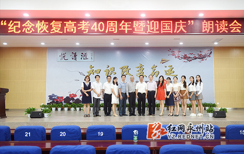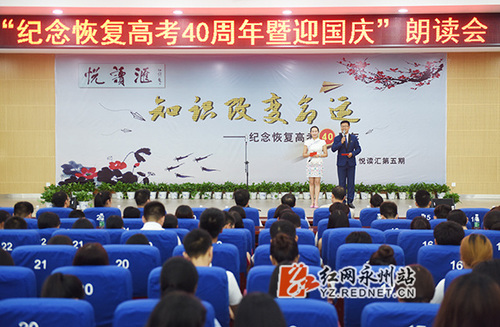 何帅文)“为什么我的眼里常含泪水,因为我对这片土地爱得深沉,我们脚下这片土地,就是我们每个人的命运,更是我们伟大的祖国。”今年是恢复高考40周年,9月26日晚,一场以“知识改变命运”为主题的纪念恢复高考40周年暨迎国庆朗读会在星空app官网精彩呈现,十几名师生同台朗读经典作品,近千名师生共同聆听,整个会场浓情四溢,荡气回肠。