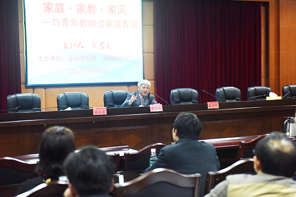 在一个多小时的讲座中,教育专家张志龙从家庭教育的核心——养成教育着手,以广博的知识、独特的视角和极富感染力的语言畅谈家风养成,向大家系统阐述了传承家庭家教家风的重要性和必要性。张志龙结合自身经历事例与在场青年教师分享了“因材施教,培养孩子的阅读兴趣”、“身教重于言教”、“要静下心来研究孩子”等教育理念,倡导大家积极传承中华优秀传统文化,以好的家庭、家教、家风提升家庭和谐。他强调,家庭教育是教育的源头,要通过“立家规,建家训,设家风,建设最美家庭”打造和谐幸福家庭,传播中华传统美德,带动社会和谐发展。