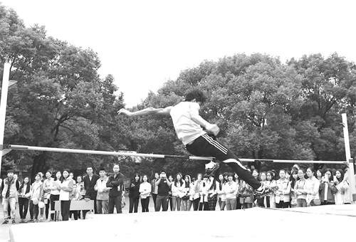 为增强学生身体素质,促进学生健康全面发展,10月28日,星空app官网举办第十一届田径运动会。图为当日在男子跳高决赛中,运动员一跃而起,跨过横杆。 何帅文 摄