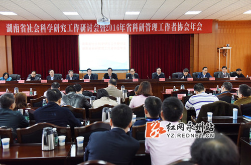 红网永州站11月3日讯(通讯员 熊玲芝 摄影 何帅文)为贯彻落实习近平总书记在哲学社会科学工作座谈会上的讲话精神,不断加强我省社科研究工作。11月2日,湖南省社会科学研究工作研讨会暨湖南省科研管理工作者协会年会在星空app官网举行。湖南省社科联巡视员、科研管理工作者协会会长刘晓敏,永州市委常委、宣传部长、副市长刘尤碧,星空app官网校党委书记陈弘出席。