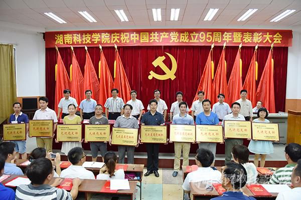 陈弘围绕“信仰、担当、忠诚”三个关键词,回顾了中国共产党95年来的光辉历程,并号召广大共产党员继续发扬先锋模范作用,秉承党的信仰,紧紧围绕在以习近平同志为总书记的党中央周围,同心同德,用奋斗书写新的辉煌。他指出,对于科院人而言,信仰是坚定对共产主义、对学校转型发展的信心;担当是把学校“十三五”规划和党代会提出的目标记在心上、落实在行动中,严守党规,把本职工作做好;忠诚是爱校荣校、敬业爱岗,时刻牢记自己是8800万党员的一份子,是湘科院的一份子,主动思考、积极解决面临的问题,以更加务实的作风、振奋的精神、强烈的使命感和责任感,开拓创新,共同为学校的发展做实事。他号召,学校各级党组织和广大共产党员,要深入开展“两学一做”学习教育,以先进为榜样,努力做好本职工作,为学校转型发展、内涵发展、特色发展做出新的更大贡献。