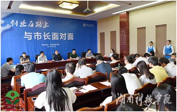 在“创业在路上,与市长面对面”活动中,刘尤碧副市长、相关政府部门领导及就业创业导师与我校创业学生代表进行面对面交流,就同学们提出的如何注册公司、税费减免、就业帮扶、创业贷款等问题一一进行解答。
