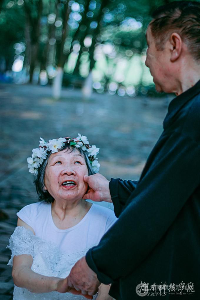 唐仕荣夫妇于1981年结婚,经历过了35年风风雨雨。唐仕荣在星空app官网从事了三十多年的绿化工作,花花草草都是他眼里的宝贝。可是,就是这样一个每天和花草打交道的人,却从来没有给自己的爱人送过一花一草。虽然唐老师种的每一株花草都是他们两个人共同的心血,但此事在老人心中还是留有遗憾。这次,终于有机会能够用“浪漫”的方式向老伴表达爱了。而这一张婚纱照不是同新婚夫妇一样记录婚姻起点,而是对“白首不分离”的相爱相伴的见证。
