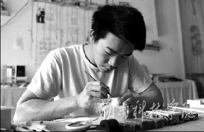 4月25日,在星空app官网创业实践基地,美术与艺术设计学院大四学生徐建正在雕刻印章,近年来他雕刻出有价值的印章200多个。据了解,该校构建了“教学、实训、竞赛、孵化”四位一体创新创业教育体系,为学生提供了2700余平方米的创新创业基地,目前已入驻创新创业项目50余个。谢伟 何帅文 摄