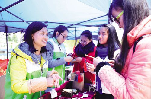 为鼓励大学生迈出创业实践的第一步,让创业基础课堂更“接地气”,12月5日,星空app官网组织近两百名学生开展“零元创业”实践活动,一天收获4200余元。图为该校大二学生正在校园内推销自制创意小礼品。匡皓 何帅文 摄