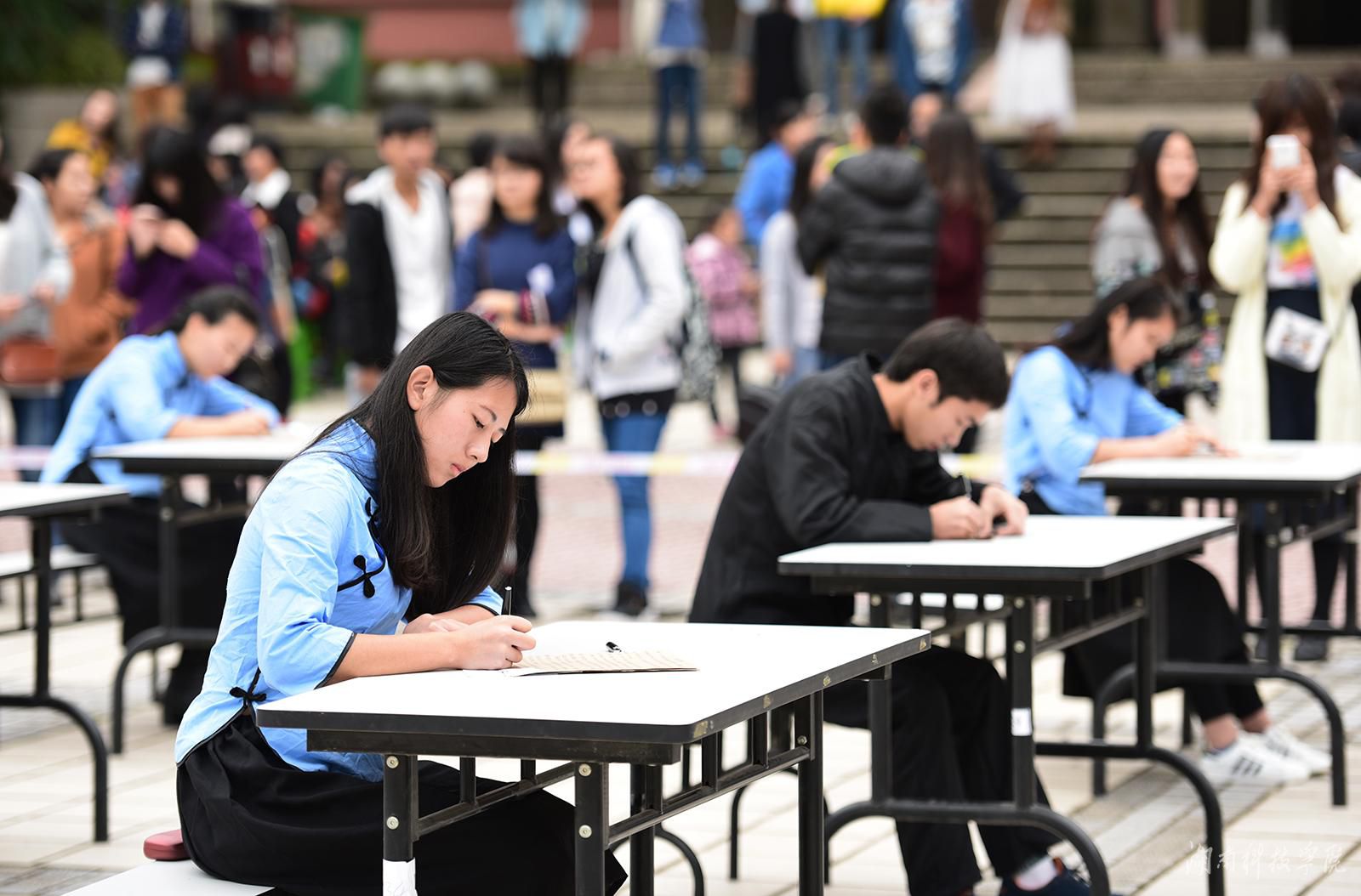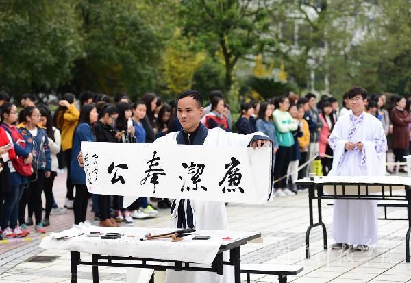 本网讯 挥毫遒劲书正气, 翰墨飘香展清廉。11月22日,星空app官网近千名师生陶醉在悠扬婉转的古筝声中,欣赏了一场学子着汉服、民国服装现场挥毫泼墨的弘扬传统文化的视觉盛宴。