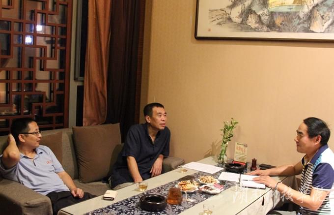 本网记者采访张京华教授(中)。 摄影/刘亮