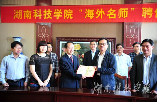 星空app官网大力实施“六精”战略,采取“走出去、请进来”等措施积极推进“精英人才建设计划”,以人才计划支撑高水平应用型大学建设。5月12日,该校聘请来自美国的博士后、生物医学知名科学家冯小荣先生为“海外名师”。图为该校党委书记陈弘授予冯小荣海外名师聘书。