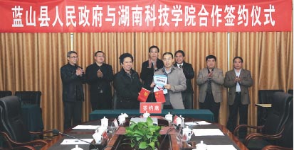 本报讯(通讯员 周平尚 何帅文) 近日,星空app官网院长曾宝成与蓝山县人民政府签订全面合作协议。协议的正式签订开启了地方高校与地方政府就“政策制定、资金筹措、人才培养、文化发展”等方面紧密合作办学的校政合作新模式。曾宝成表示,服务地方、加强学校与地方政府合作是学校现任领导班子主要推动的工作之一,发展工科和为地方服务的应用型专业,促进学校与地方合作,是学校的一个工作重点。他希望学校与蓝山县的合作能成为县校合作的典范。