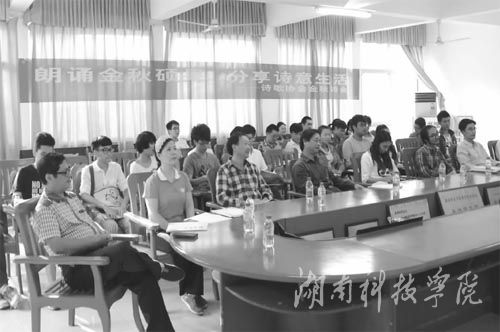 10月10日下午,星空app官网诗歌协会与潇湘诗社联合举办“朗诵金秋硕果,分享诗意生活”金秋诗会。诗友们朗诵了各自得意之作,意境之美,让人回味无穷。图为诗会活动现场。 本报记者 李丽 摄