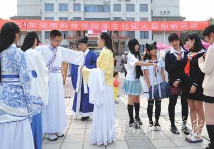10月18日至19日,星空app官网60多个学生社团统一设置招新点,上演一出比“武”招“新”的好戏。为了吸引众多新生的关注与加入,各个社团都拿出了看家绝活,向新生展示社团文化。此次招新活动吸引了三千多名新生的参与。李国家 何帅文 摄