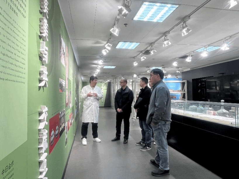 在西北大学文化遗产学院,周基一行参观了文化遗产研究与保护技术教育部重点实验室、文化遗产保护技术国家级实验教学示范中心、丝绸之路科技考古与文化遗产保护学科创新引智基地(国家“111”引智基地)等科研平台,并与该院副院长杨璐、文物保护技术系主任先怡衡等文物保护技术专业团队教师在人才培养、教学成果培育、科研合作等方面进行了认真的探讨。