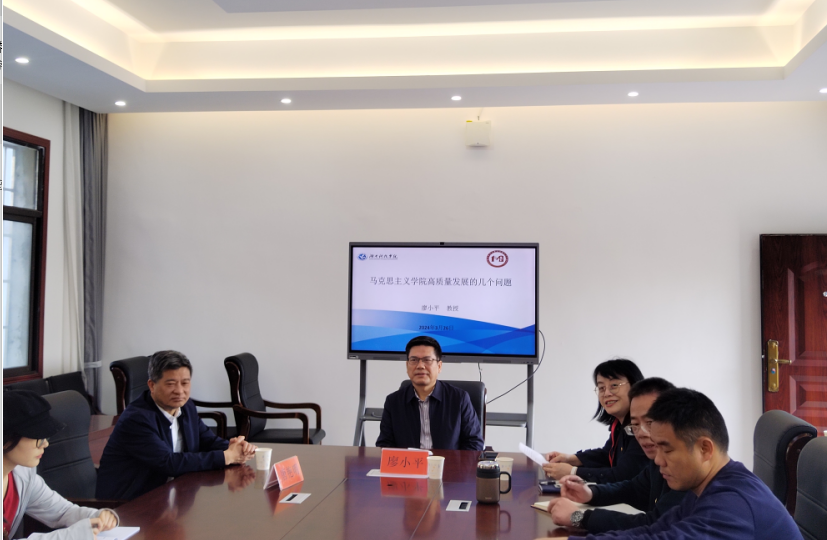 本网讯 3月26日上午,应马克思主义学院邀请,中南林业科技大学原校长、湖南省绿色发展研究院院长廖小平教授来校开展学术讲座。校学术委员会主任唐艳明教授、马克思主义学院院长廖雅琴以及马克思主义学院全体教师和旅文学院教师代表参加了本次讲座。
