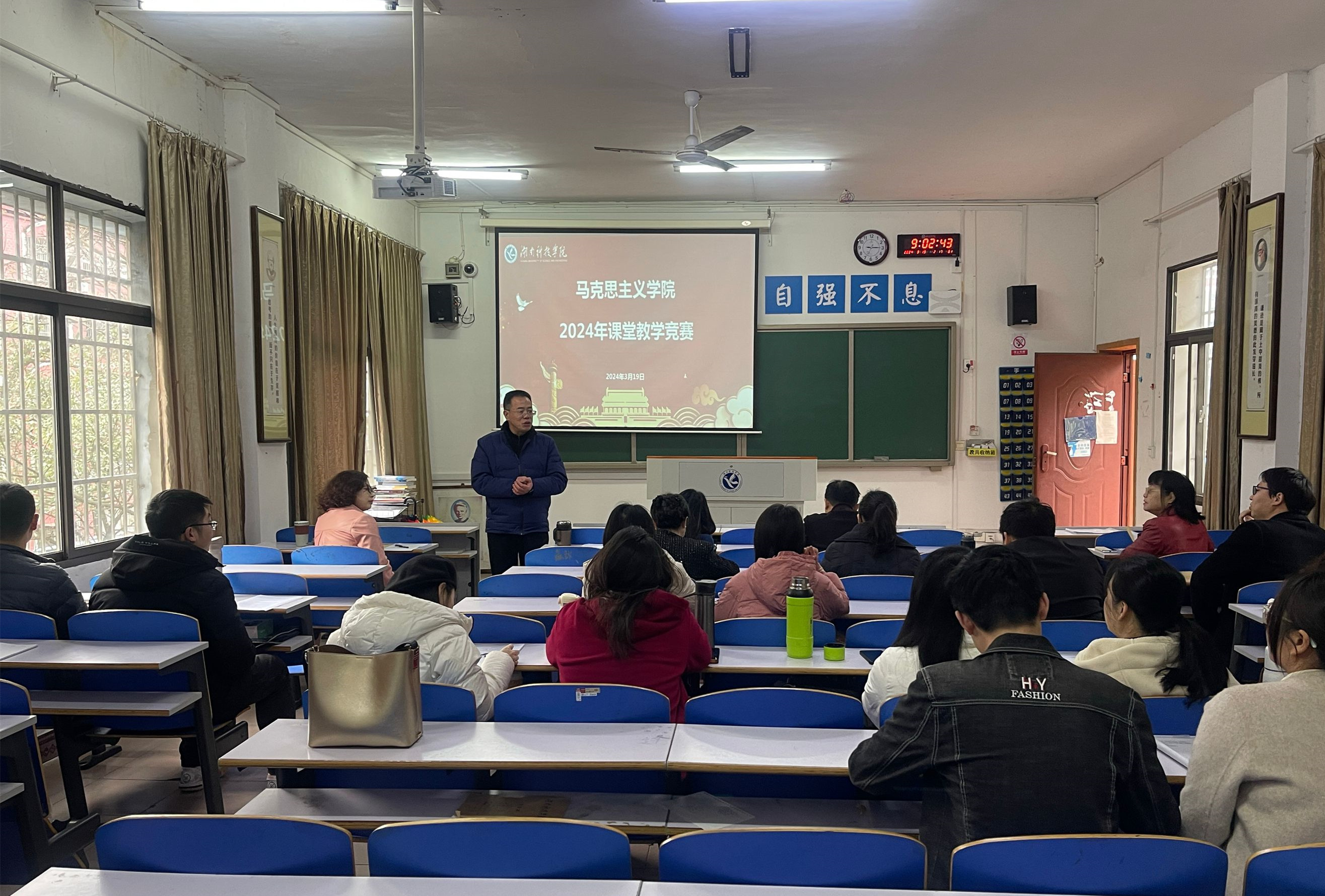本网讯 3月19日,马克思主义学院组织各教研室青年教师开展了2024年课堂教学竞赛活动,学院6名青年教师参加本次课堂教学竞赛。教务处处长张剑、教学质量管理处处长唐耀平,马克思主义学院院长廖雅琴、党总支书记陈玉皎、副院长杨军等担任评委。