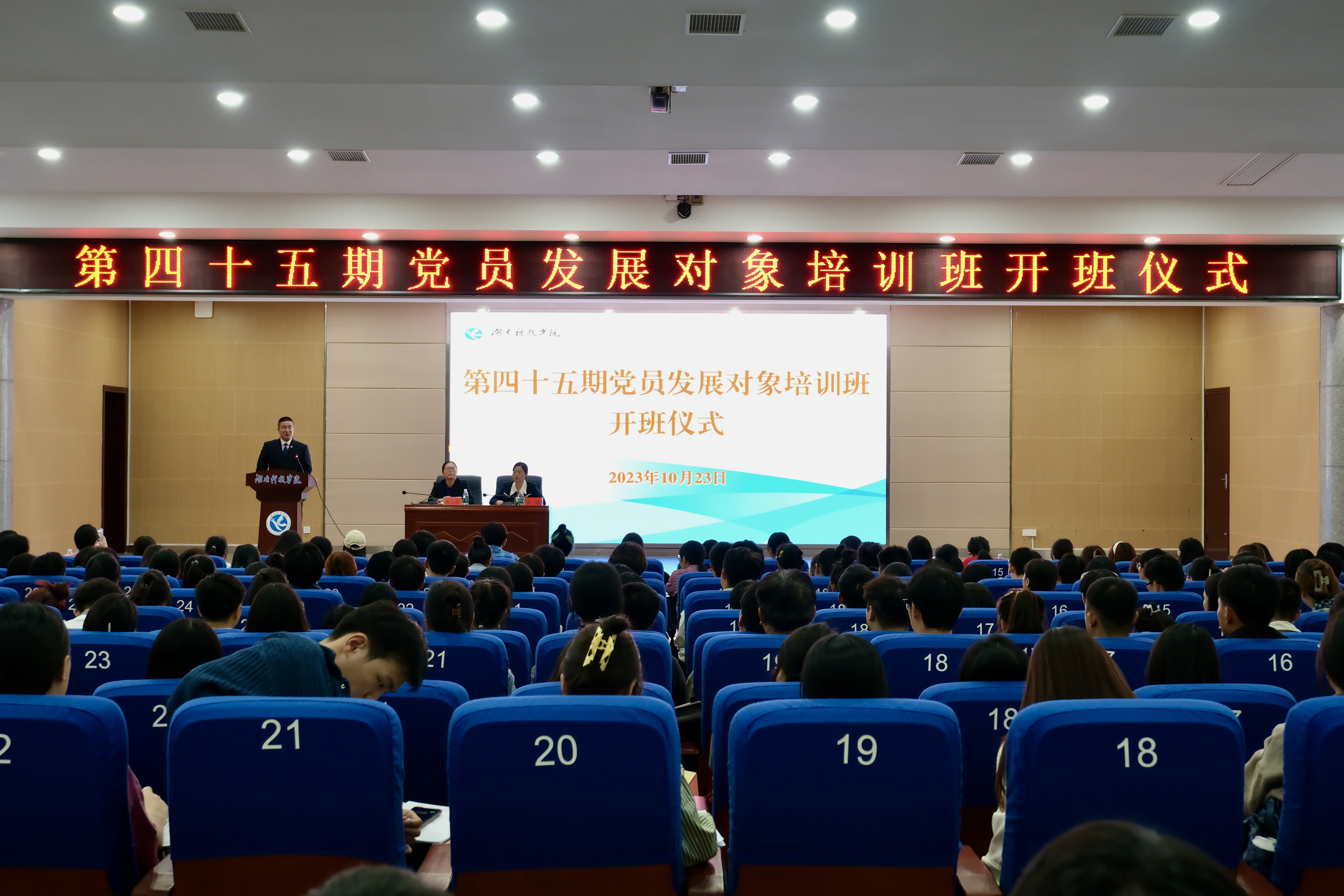 本网讯(记者 李胜洁)10月23日,第四十五期党员发展对象培训班开班仪式在潇湘大讲堂举行。党委副书记、党校校长宋宏福,组织部副部长、党校副校长陈玉皎出席开班仪式。