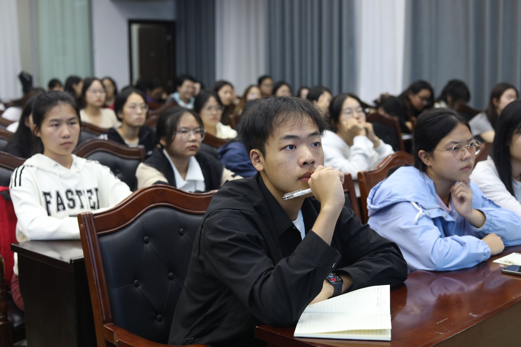 李国润从追忆大学时光、回顾职业成长历程、对同学们提出期盼等三个方面进行了宣讲。他深情回顾了大学时光并激励同学们要大胆追求梦想,还以自身职业经历讲述了思政教育专业学生的职业成长路径。他强调,一是要努力付出,做中学教育发展的辛勤耕耘者;二是要引领师范,做区域政治学科高质量建设的推动者;三是要勇于实践,做新课程实施的积极探索者。鼓励同学们不忘立德树人初心使命,争做“四有好老师”,用心用情用爱为学生成长保驾护航。