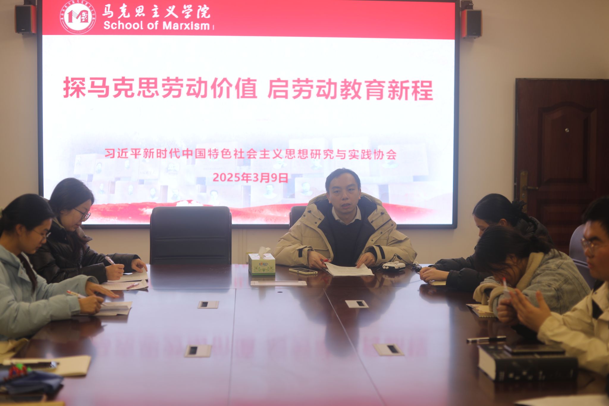 本网讯(通讯员 张园 周聪 曹惠如)3月9日,习近平新时代中国特色社会主义思想研究与实践协会于鹤鸣楼405教室举办了以“探马克思劳动价值,启劳动教育新程”为主题的论文研磨活动,特邀马克思主义学院专任教师邓昱全为同学们进行指导。