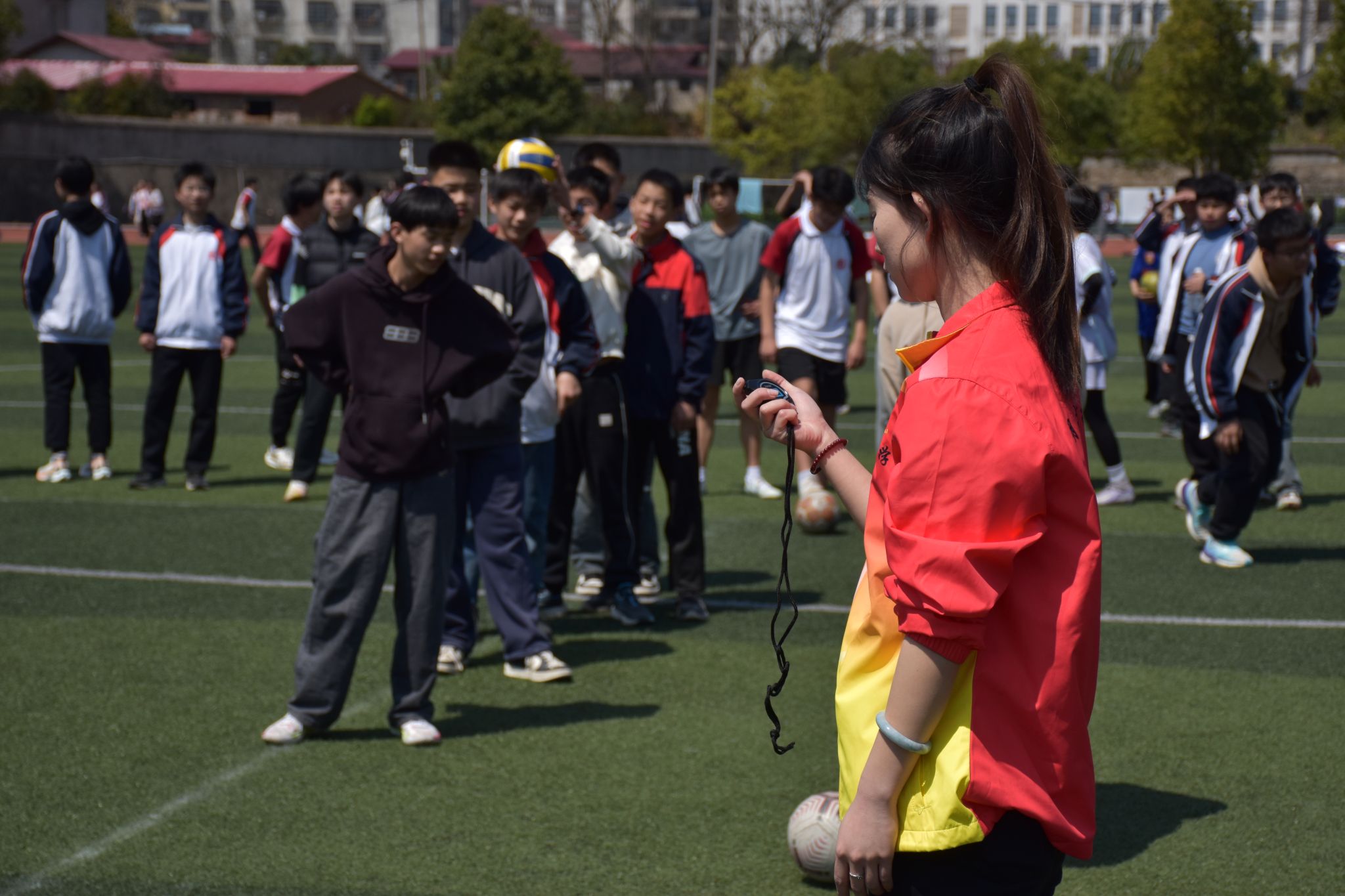 大学生志愿者们担任教练与考官,针对排球、篮球、足球、田径、跳绳等中考体育项目定制训练方案,帮助同学们纠正动作细节并传授技巧。训练结束后,还一对一为学生分析成绩,提出改进建议。