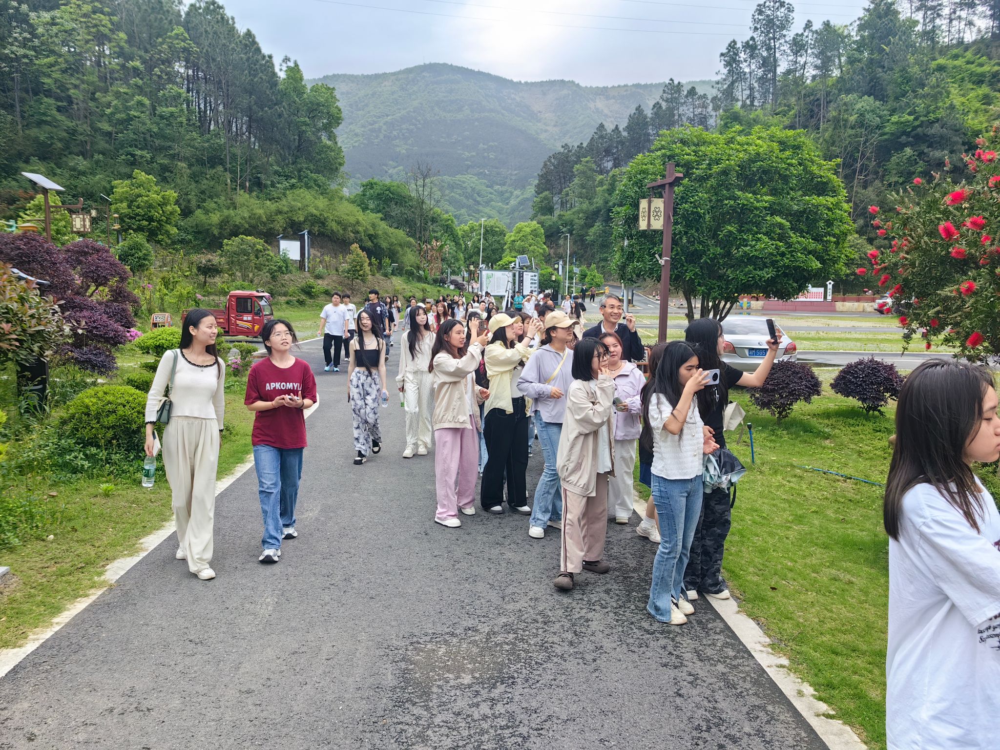在双牌青龙洞景区,学生们见识了自然景观的科学保护与沉浸化游览设计;在双牌花千谷月湖景区,体会了主题IP花卉资源的创意融合,让学生精准定位景区特色,以差异化运营提升游客体验;在理学鼻祖周敦颐故居,“出淤泥而不染”的君子品格,不仅是文化瑰宝,更为文旅融合提供独特IP,使学生深刻体会到历史遗迹的保护开发,需深挖文化内核,让传统文化以创新姿态“活”在现代旅游场景中,实现文化传承与旅游发展的双赢;在宁远舜帝陵,学生们瞻仰舜帝陵,感受历史文脉在文旅场景中的活化传承;走访下灌村,体会古村风貌与休闲农业的巧妙结合,使学生深知深挖在地文化价值,创新文旅业态融合的重要性。