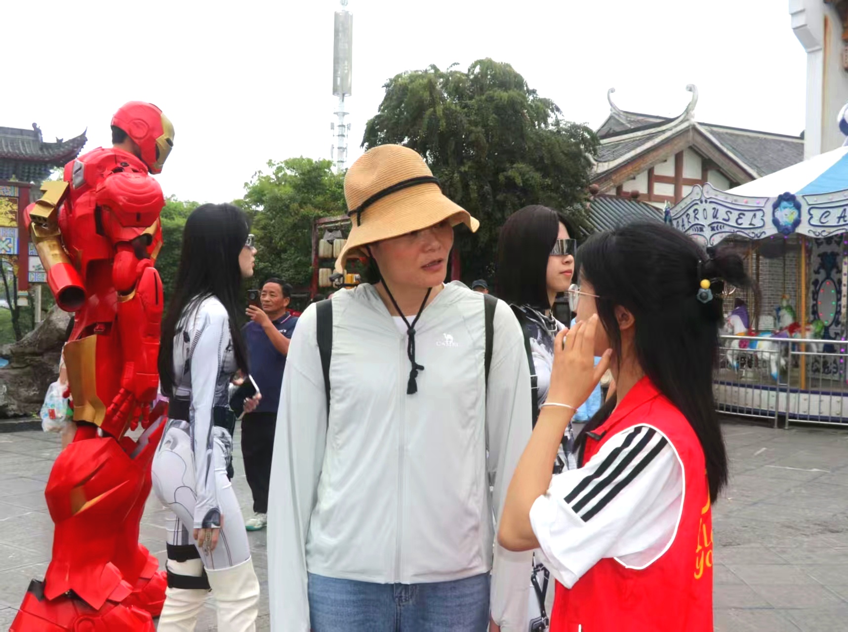 “五一”期间,零陵区推出“超燃AI秀 嗨Fun零陵城”系列文旅活动,校团委主动对接地方需求,组织志愿者深度参与服务。在柳宗元文化旅游区,志愿者化身“文化使者”,为游客讲解柳宗元生平故事;在冉溪广场“一眼千年·零陵古城”Cosplay电音秀的现场,他们维护秩序、指引路线,确保活动安全有序。志愿者团队还针对老年游客、亲子家庭等群体提供个性化服务,如协助拍照、寻找失物等,赢得游客频频点赞。
