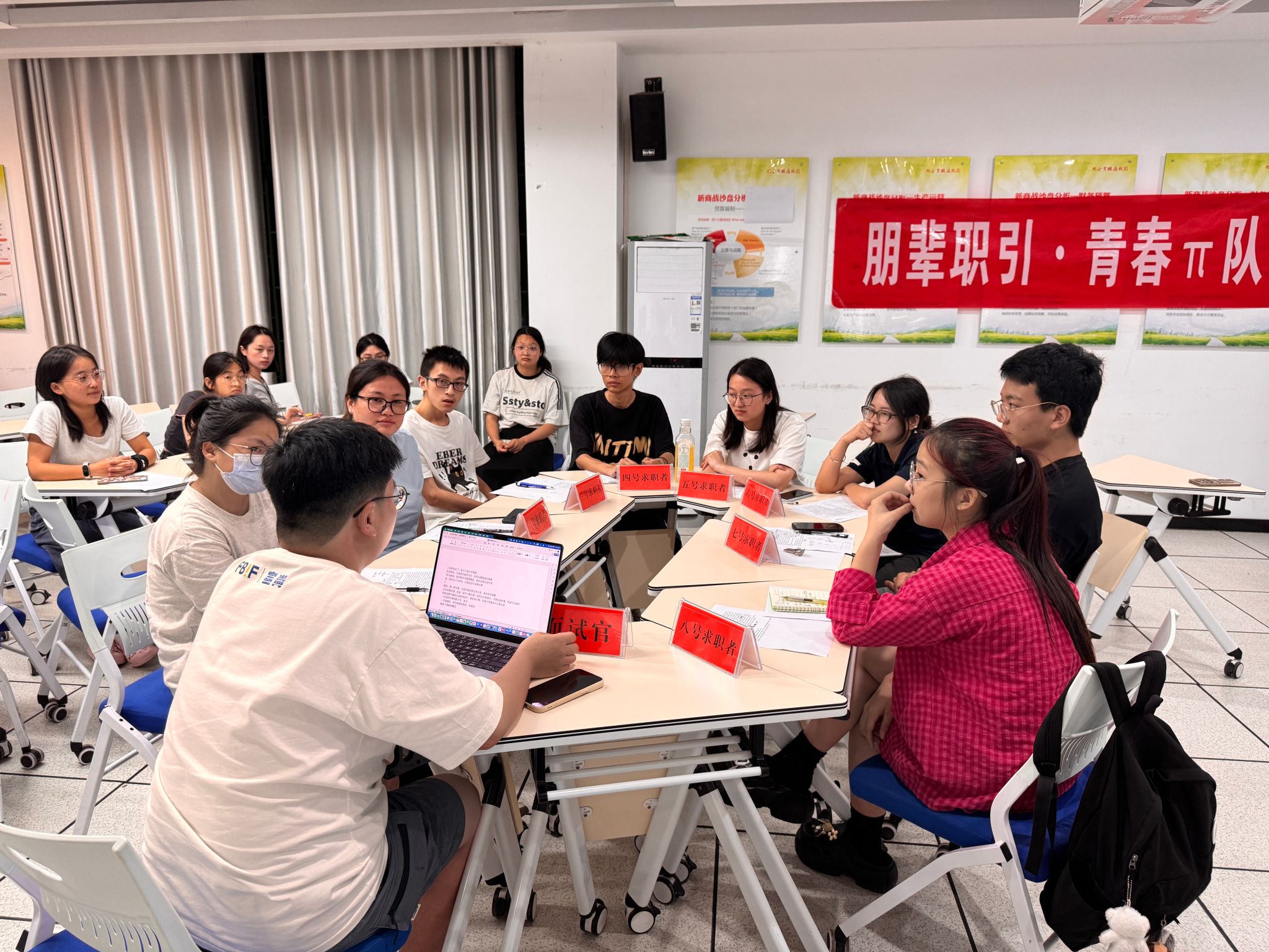 本网讯(通讯员 蒋文芳 刘瑞菲)5月29日,第六期“朋辈职引·青春π队”职业能力提升专项训练活动在创新创业学院成功举办。本期活动以模拟面试为主题,特邀传媒学院2025届优秀毕业生章哲瑜担任训练官,来自8个不同学院的15名学生参与。