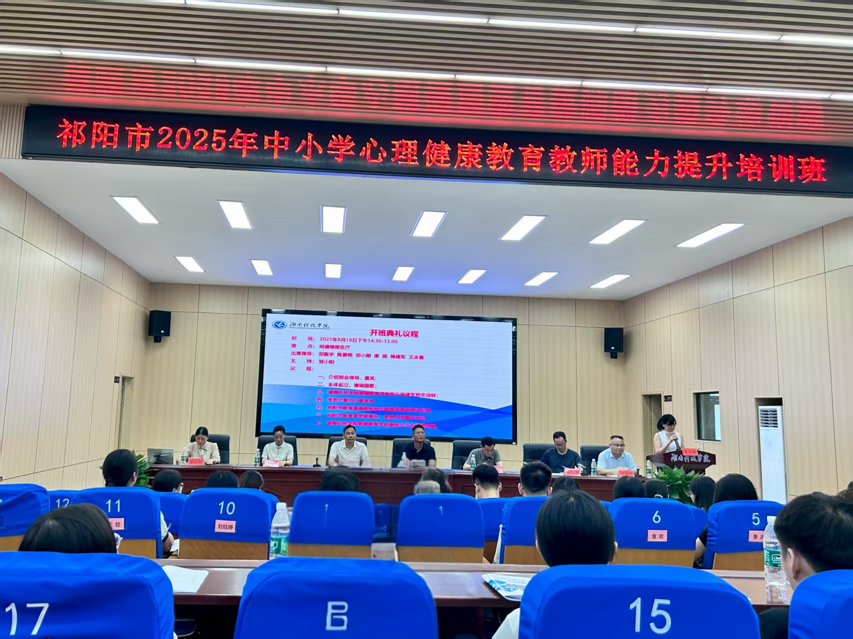 本网讯(通讯员 曹湖云 于碧)8月18日,祁阳市2025年中小学心理健康教育教师能力提升培训班在我校开班。祁阳市教育局党委委员、副局长邓振宇,祁阳市教师进修学校、星空app官网继续教育学院相关负责人及80名祁阳市中小学心理健康教育教师参加开班典礼。