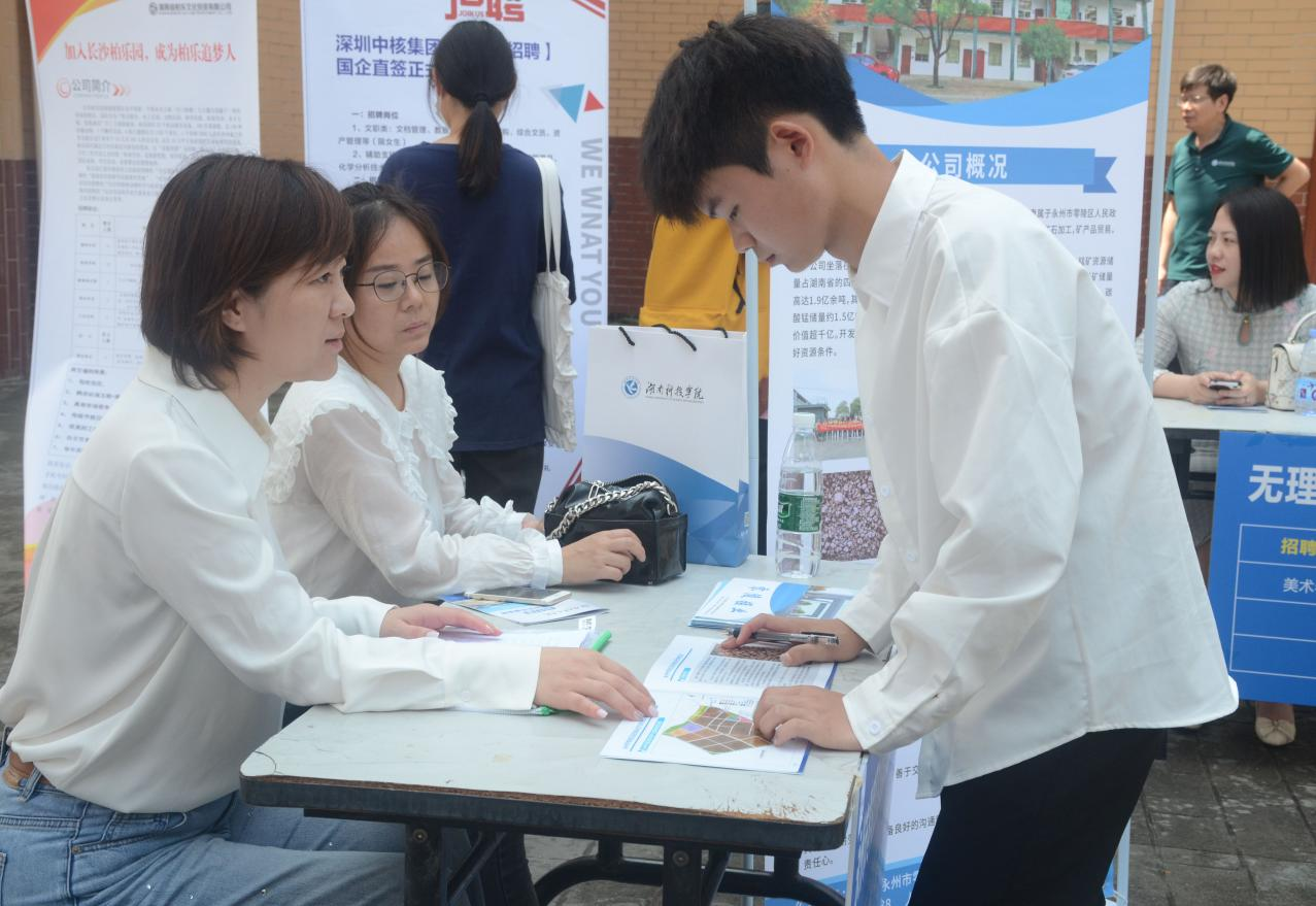 此次招聘会吸引了湖南杰联律师事务所、湖南永蓝高速有限公司、无理童画美术书法培训公司等企业前来招聘。现场,学生们携带精心制作的简历,主动了解用人单位需求并与其进行面对面的交流。
