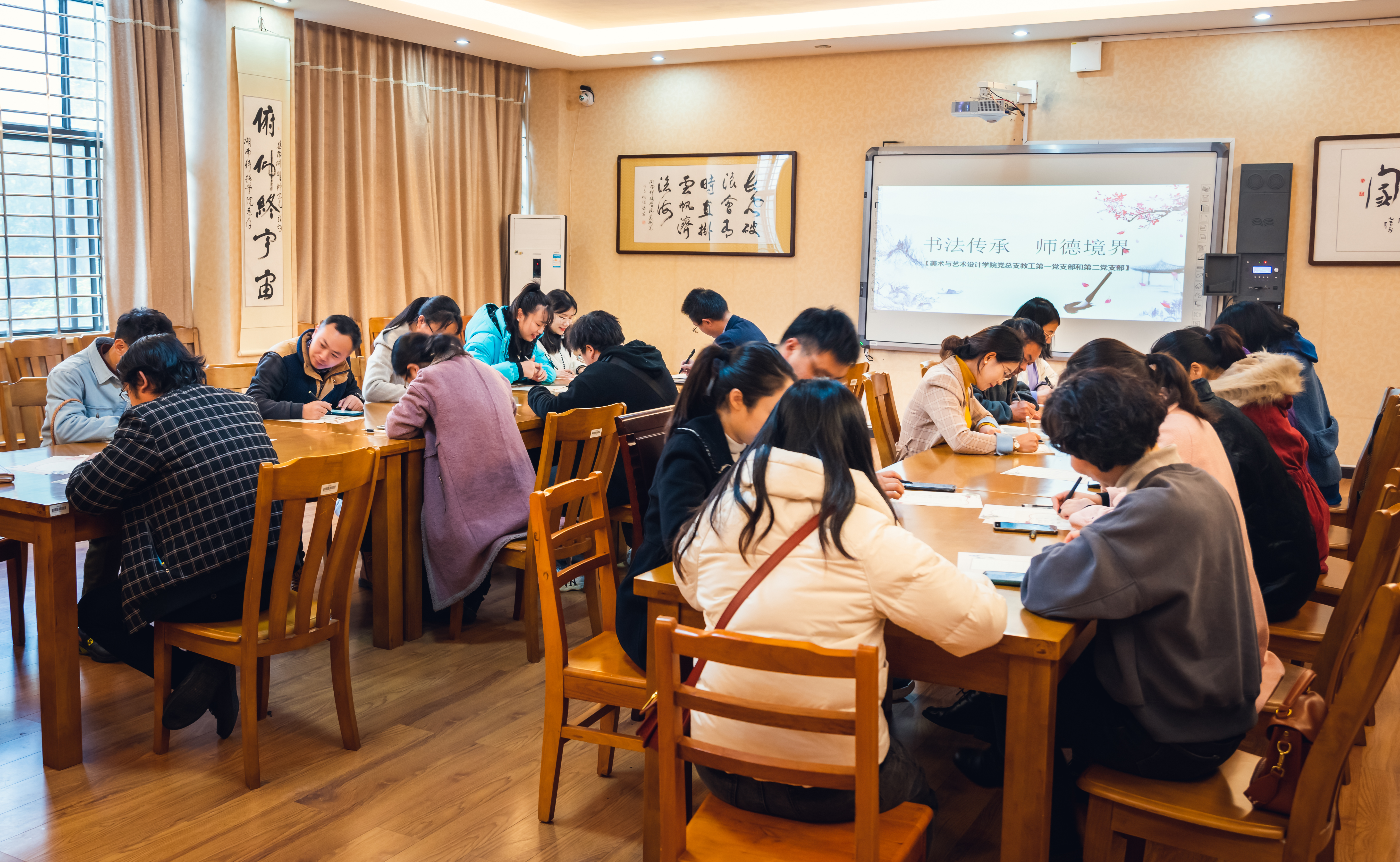 本网讯 11月16日下午,美术与艺术设计学院党总支组织教师党员开展“学习六中全会精神 树立优良师德师风”主题党日活动。全体党员通过学习研讨、硬笔书法大赛等方式,学习十九届六中全会精神,切实加强师德师风教育。
