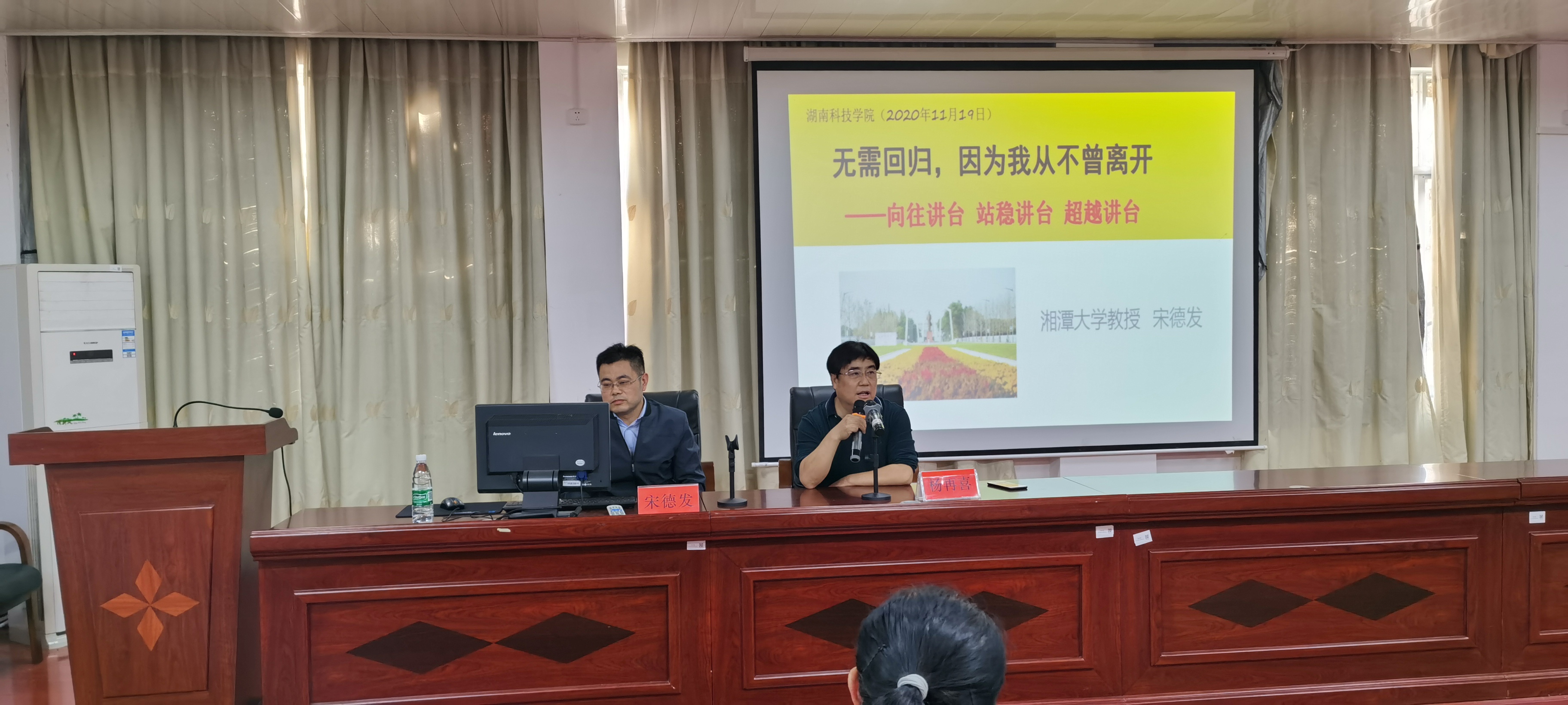 宋德发以《无需回归,因为我从不曾离开——向往讲台 站稳讲台 超越讲台》为题作专题报告,结合自身经历及其他优秀教师的事例,阐述了教师如何从向往讲台成为教师、到站稳讲台成为合格教师、最终超越讲台成为人民满意的优秀教师的心路历程。