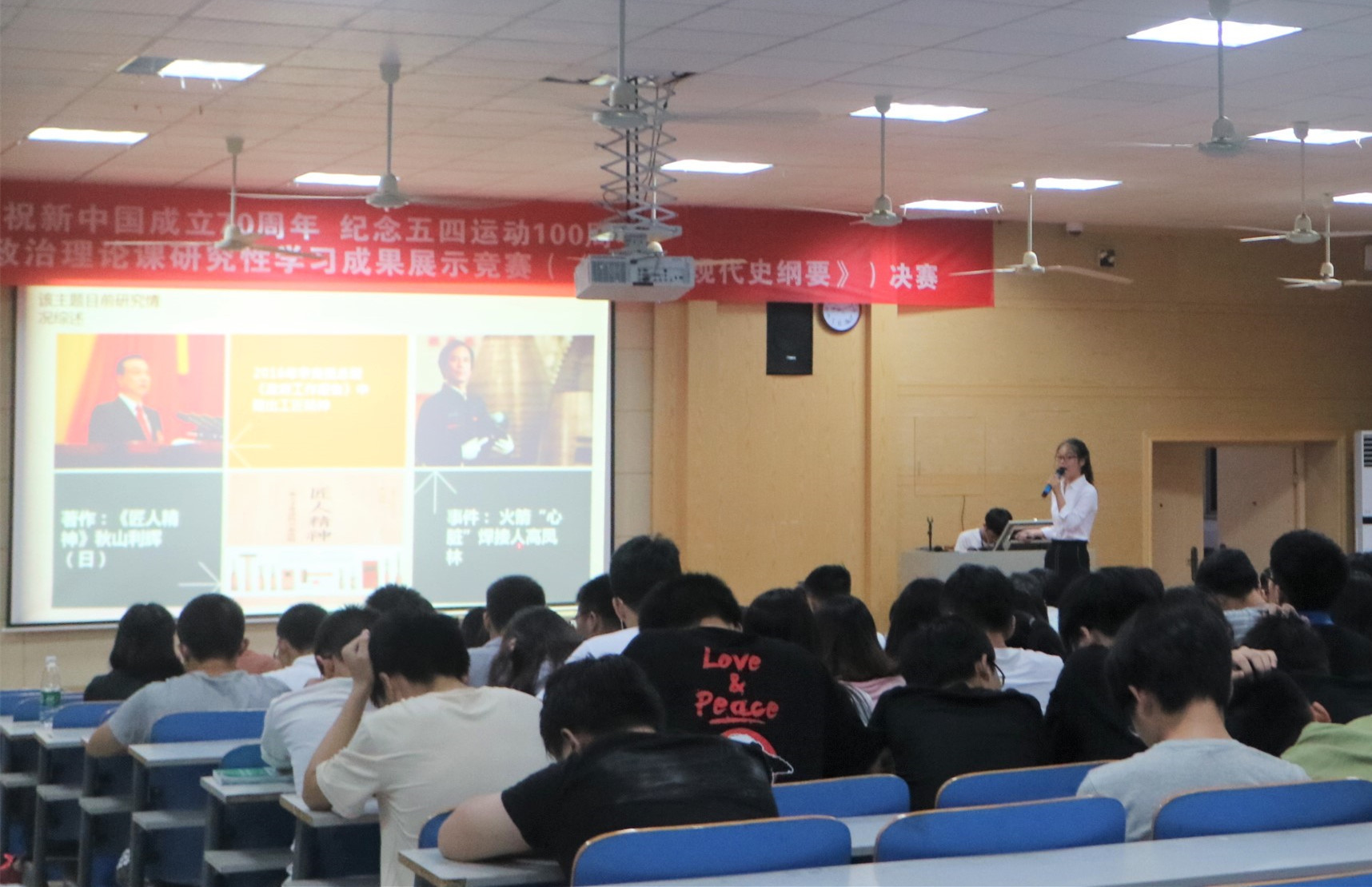 本网讯 6月10日晚,马克思主义学院在致远楼举办学习贯彻习近平新时代中国特色社会主义思想暨第五届思想政治理论课《中国近代史纲要》研究性学习成果展示竞赛活动。