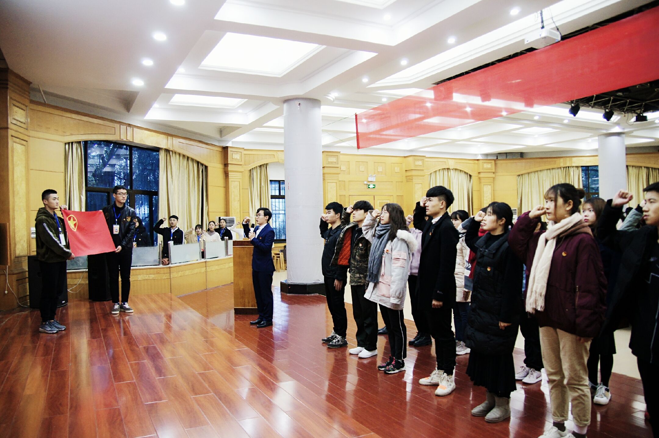 会上,校团委书记刘佳宣读关于成立星空app官网学生社团联合会团总支以及大学生外语协会、党建协会、习近平新时代中国特色社会主义思想研究与实践协会等13个社团团支部的决定。程智开、刘佳为新成立的团总支和社团团支部授团旗,校学生社团联合会团总支书记陈鑫作为领誓人,带领全体与会人员重温入团誓词。