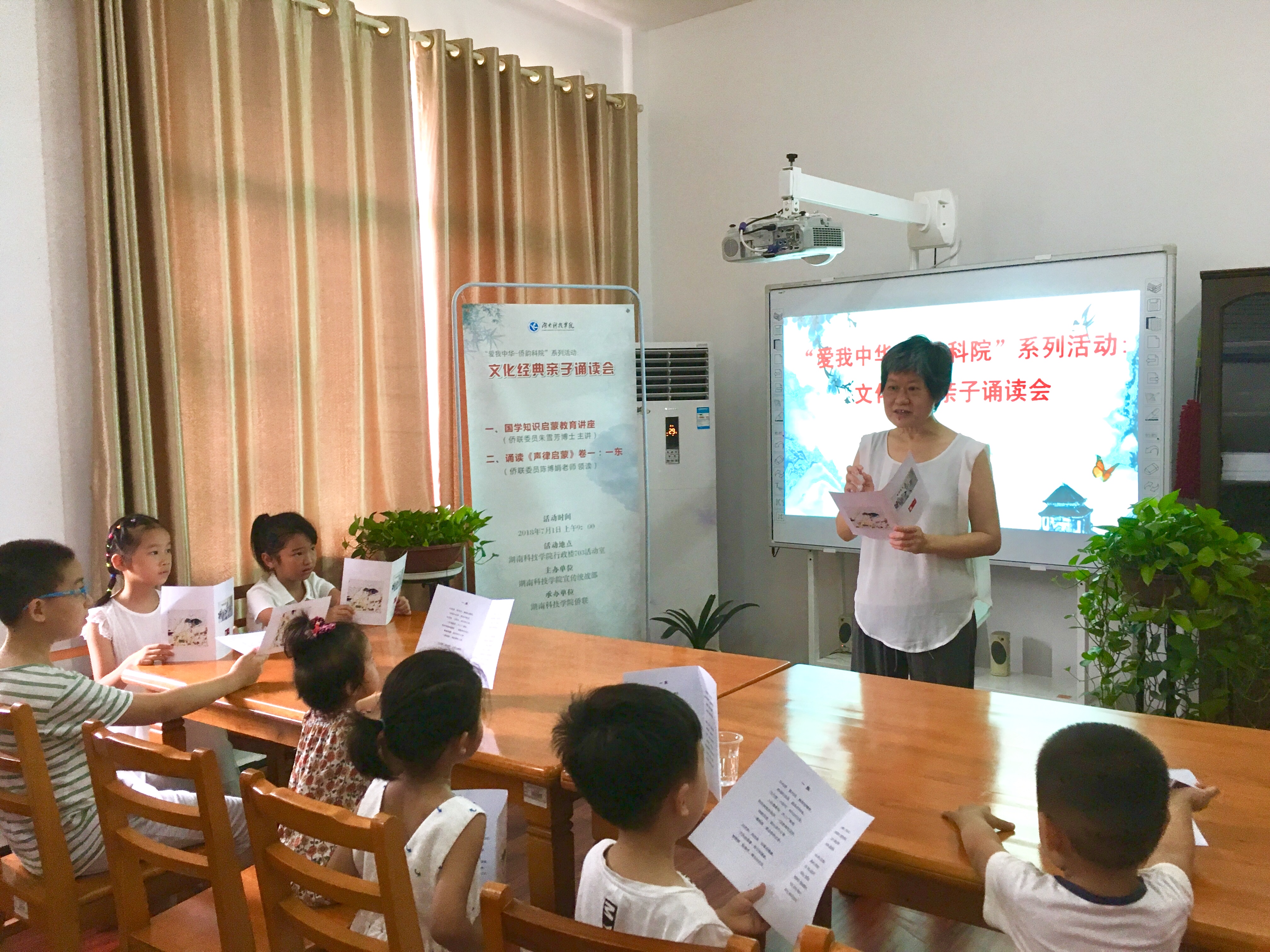 侨联委员朱雪芳博士为小朋友进行了国学知识启蒙教育讲座,侨联委员陈博娟老师带领小朋友们诵读了《声律启蒙》节选。整个活动气氛活跃,在快乐中诵读和体悟,取得了良好的效果。最后,校侨联为小朋友们发放了国学经典儿童读物,鼓励他们养成诵读经典的好习惯。