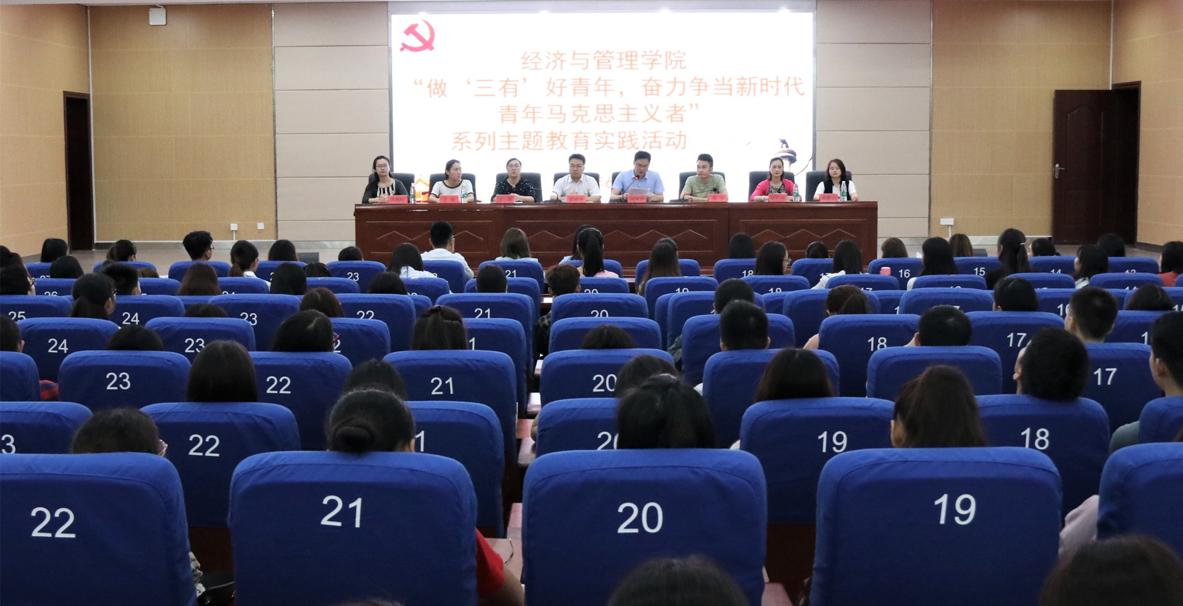 本网讯 6月5日晚,经济与管理学院在潇湘大讲堂举行“做‘三有’好青年,奋力争当新时代青年马克思主义者”系列主题教育实践活动启动仪式。该院党总支书记胡清华、党总支副书记兼副院长刘国华以及全院辅导员出席该仪式。