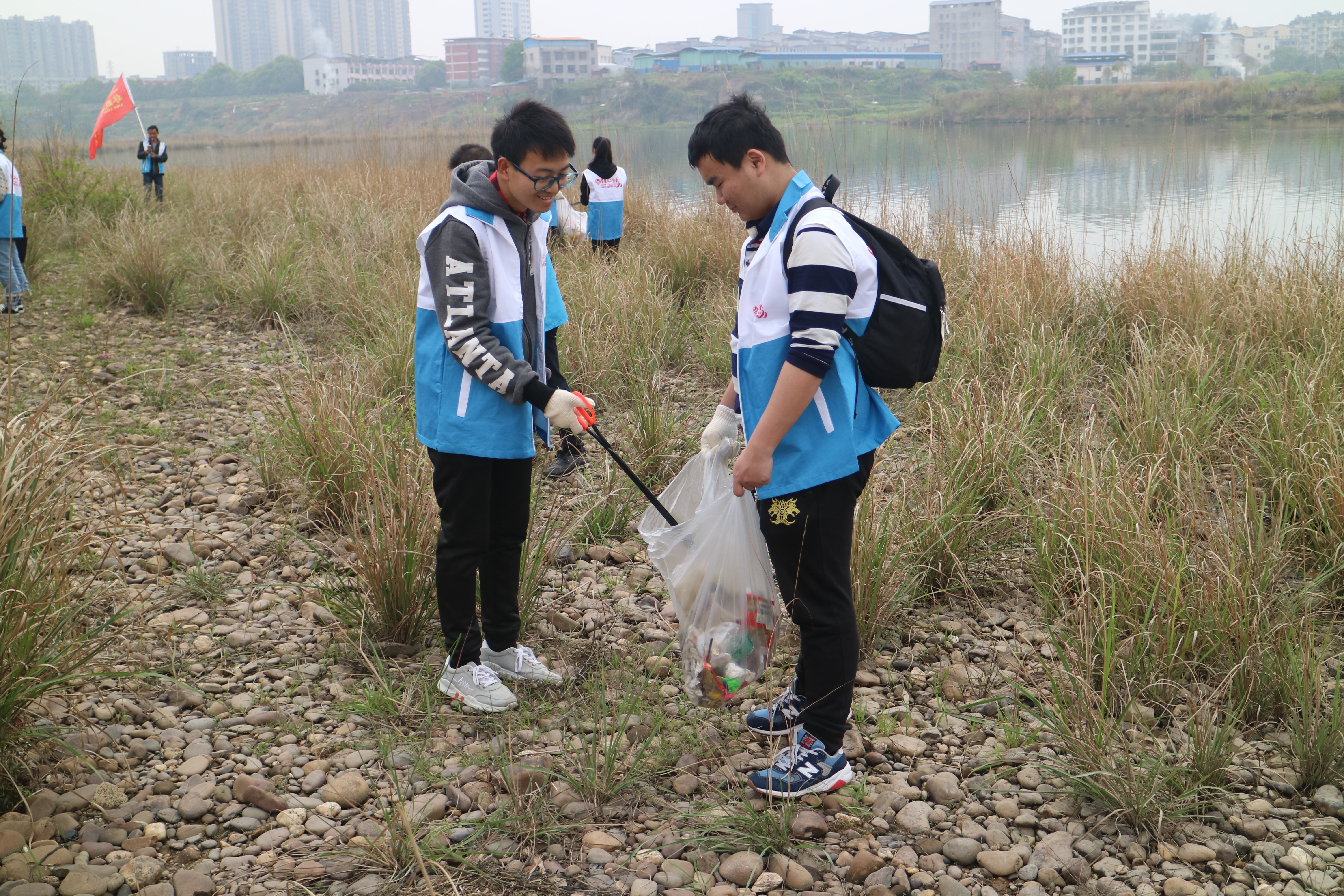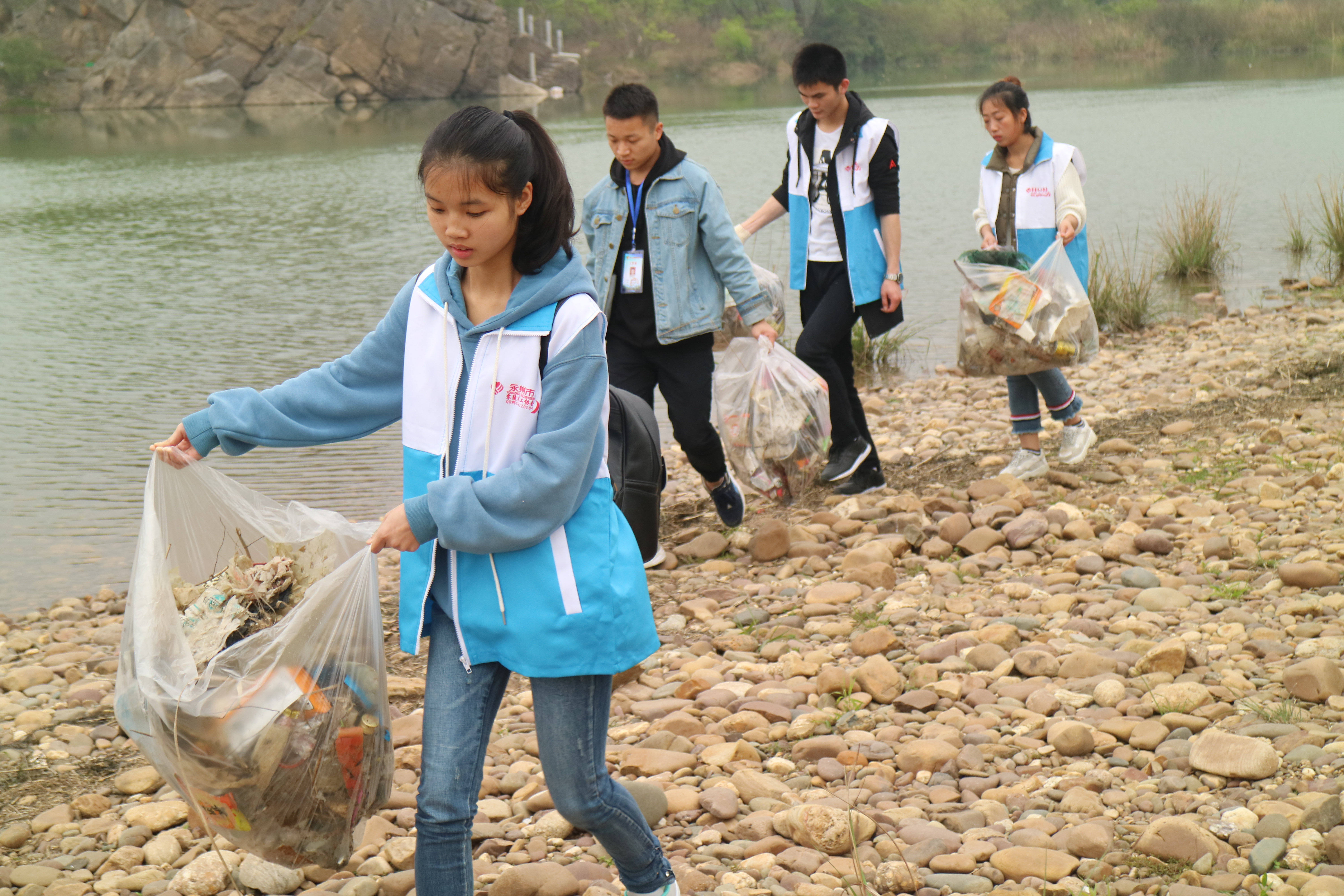 本网讯 3月24日上午,马克思主义学院与零陵区文明办、零陵义工协会在南津渡大坝开展百米净滩环保志愿活动。