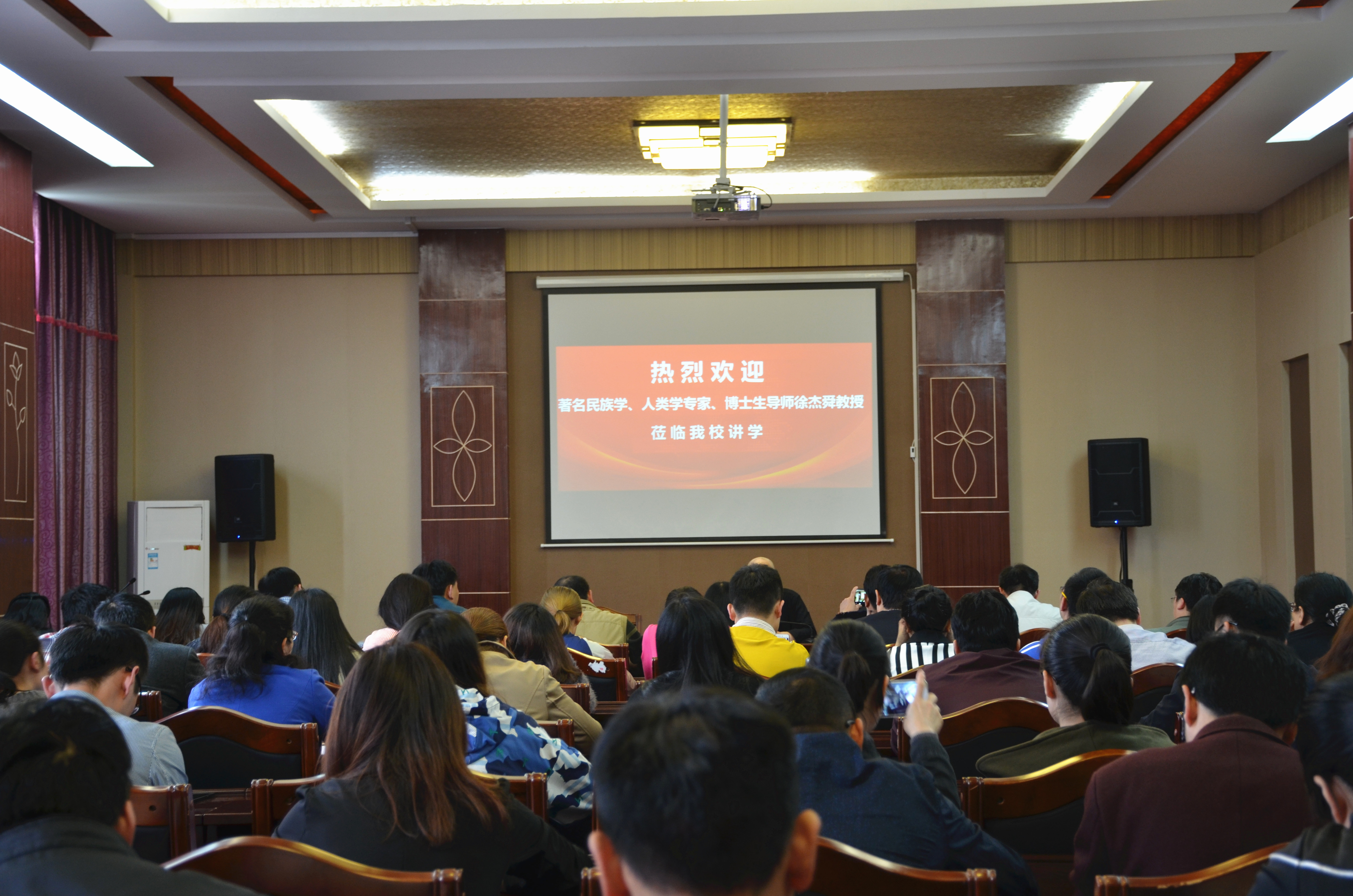 徐杰舜教授以如何在永州做出学术成就为切入点,阐述了自己对学术之道的理解。他表示不论在哪个地方做研究,只要找准方向,找对方法,坚持不懈,就能取得成功。就如何开展学术研究,他与大家分享了自己的经验,他认为学术研究可以归纳为选点、架子、选材料、提炼、表达。他表示学术研究并不是什么都可以研究,也不是研究什么都能取得成就,一定要根据自己的学术情况结合自己所占据的资源,从实际出发选好点。他认为永州文化丰富多彩,永州八大值得研究的“点”,包括道县考古文化、舜文化、柳文化、女书文化、湘南方言等,只要找准切入点,永州地方文化研究将大有可为。除了找准方向,徐教授还将理论知识比作支架,他说一篇文章必须要有理论作支撑,理论可以使研究成为常青树。