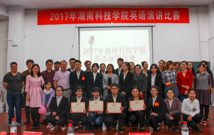 此次比赛旨在进一步激发学生学习英语积极性,促进我校大学英语教学工作,为参加湖南省普通高等学校第23届大学生英语演讲比赛做准备。比赛中,选手们语言流利,感情充沛,充分展示了深厚的英语演讲功底,彰显了我校学子积极向上的良好精神风貌。精彩的演讲赢得了观众的热烈掌声,现场气氛十分活跃。经过激烈角逐,最终评委老师从选手的演讲内容、技巧、发音等方面进行评判,来自外国语学院的全允平、唐婷、朱曙红、肖华飞获得一等奖。