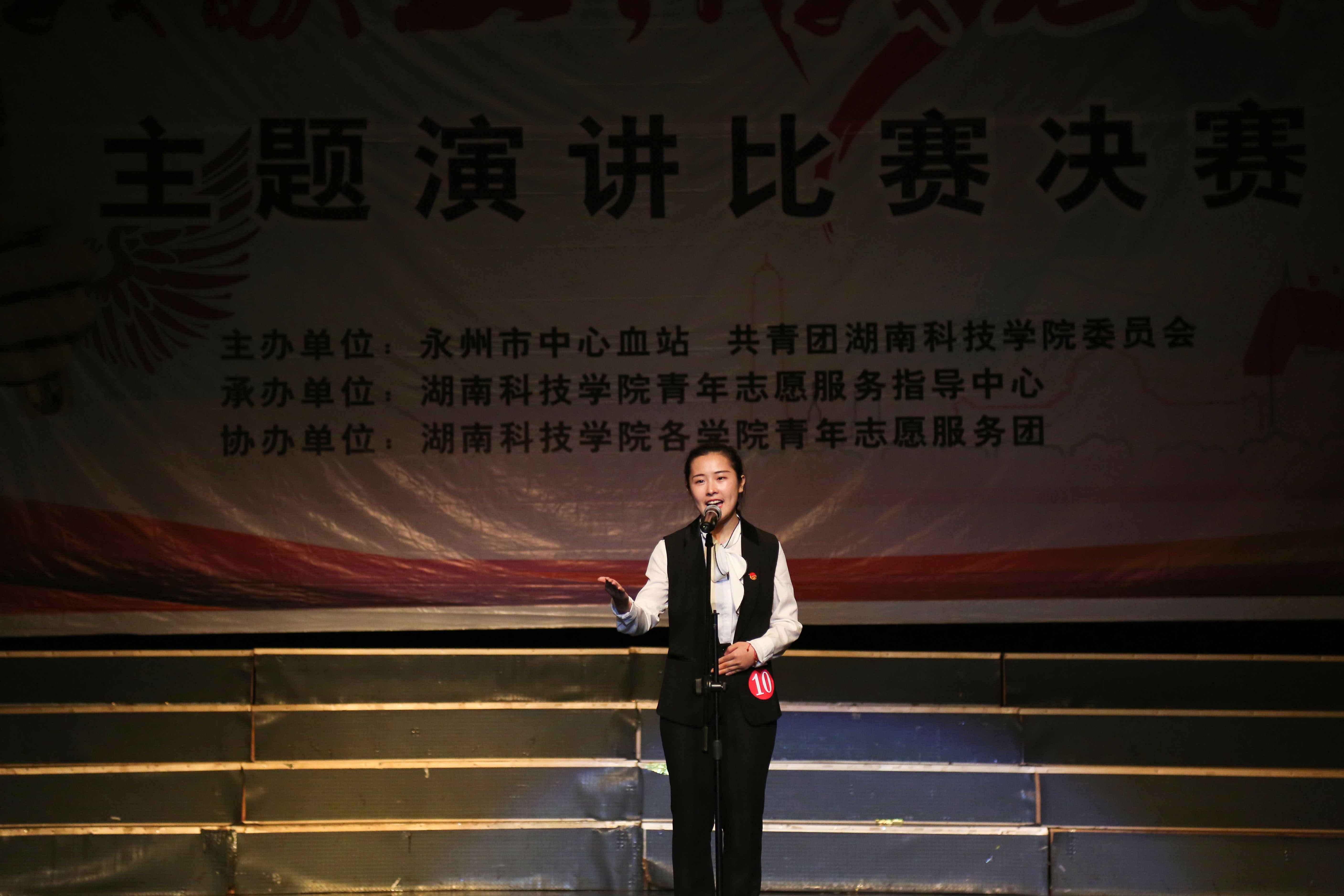本网讯 4月7日晚,由共青团星空app官网委员会、永州市中心血站联合主办,学校青年志愿服务指导中心承办的“我献血,我光荣”主题演讲比赛在音乐厅举行。永州市中心血站党支部书记、站长郑淑山,校团委副书记刘佳等应邀出席并担任评委。