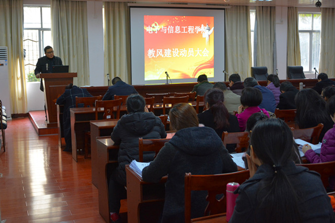 本网讯 为进一步加强教风学风建设,促进教师教学水平和教育教学质量的不断提高,3月7日下午,电子与信息工程学院召开教风建设动员大会,该院全体教职工参加会议。