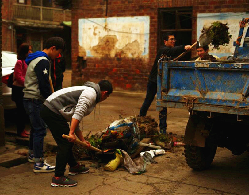 社区志愿者清理卫生死角,老人们聊家常,辅导孩子写作业。在该社区4组五保老人梁金凤家里,志愿者们围在一起陪老人聊天,了解老人的生活现状,并为老人洗头发、洗被子,还为送去大米、植物油。在留守儿童唐小辉、王小语家中,志愿者给他们辅导作业,为他们送去课外书籍和学习用具,并鼓励他们要好好读书,将来做对社会有用的人