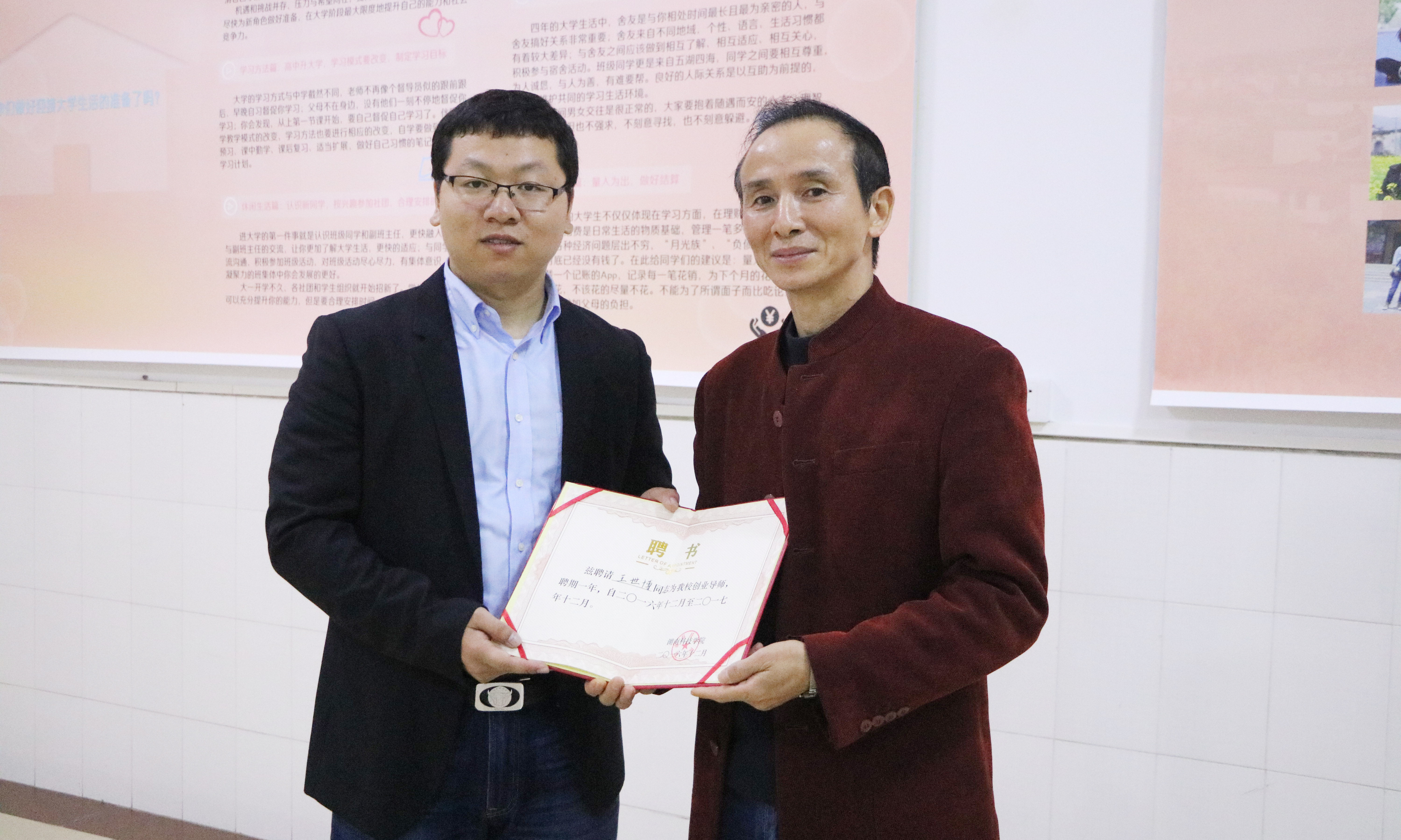 本网讯  12月9日,传媒学院聘任深圳广播电影电视集团导演、执行制片、深圳光维创益传媒有限公司总监王世博先生为该院的创业导师,传媒学院党总支书记蒋诗堂向王世博颁发了创业导师聘书。