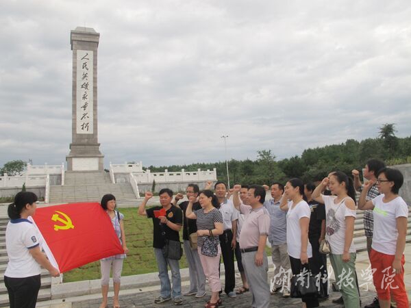 本网讯(通讯员 唐维)6月14日下午,图书馆党总支组织全体党员、入党积极分子以及职工代表前往永州市烈士陵园瞻仰烈士纪念碑,缅怀革命先烈,重温入党誓词。