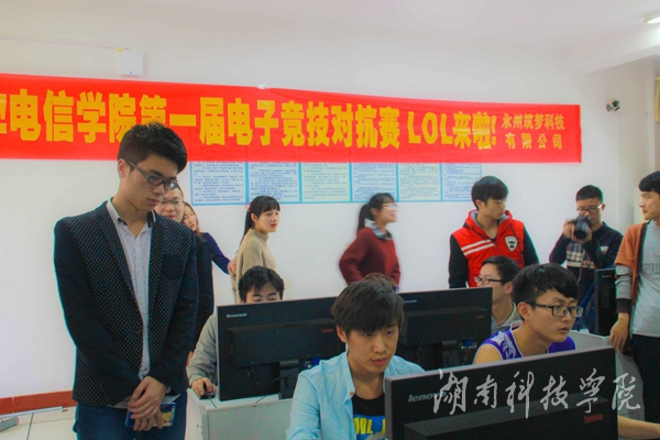 本网讯(通讯员 刘俊雄 吴清燕)4月8日下午,由电子与信息工程学院主办的英雄联盟电子竞技比赛在知行楼404和405机房举行。