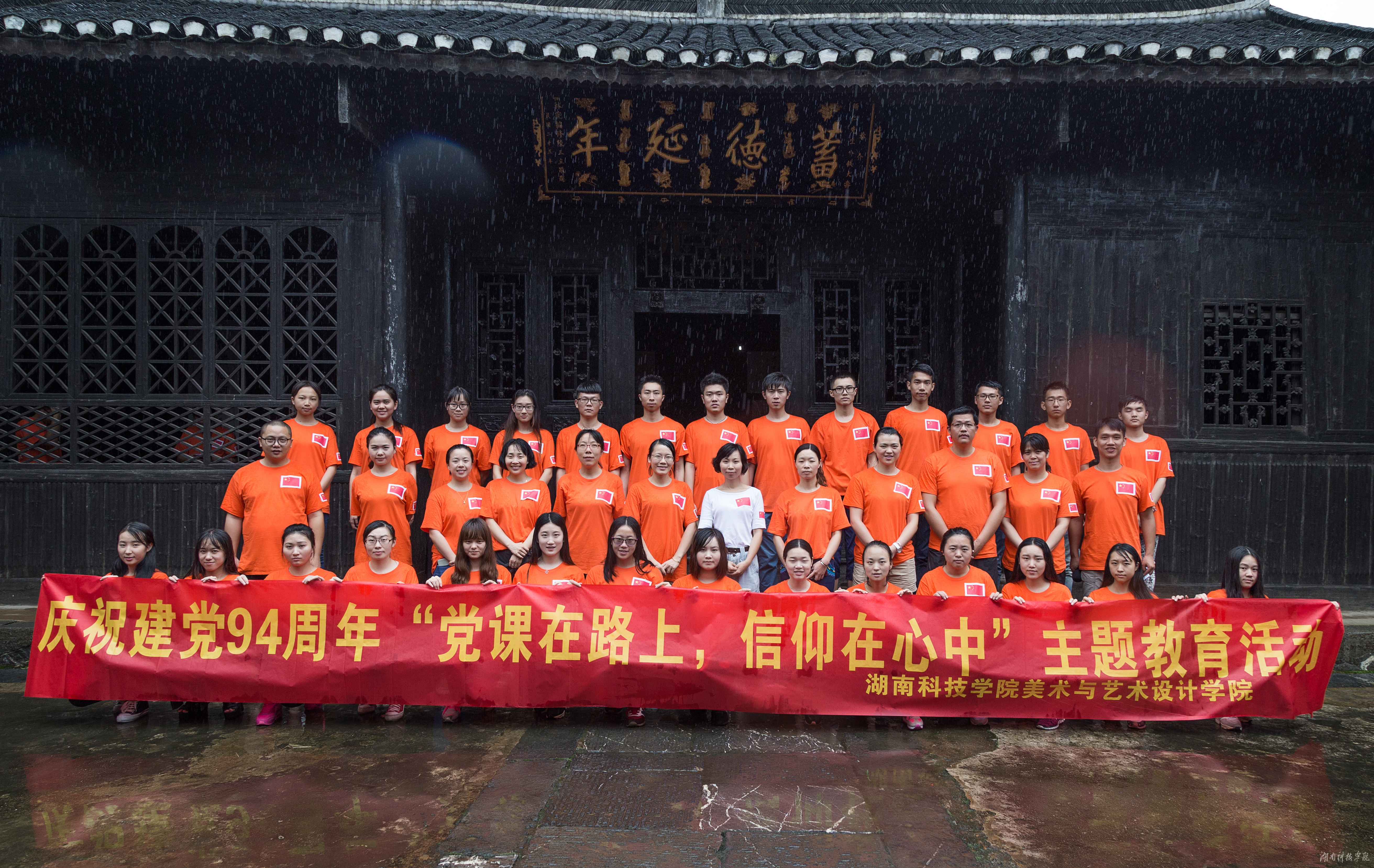 本网讯(通讯员 付星星 摄影 李灿坤)为庆祝建党94周年, 6月19日上午,美术与艺术设计学院总支书记谢筱冬带领师生党员一行46人,由校东大门出发,冒雨毅行至李达故居,纪念和缅怀革命先烈,向老一辈无产阶级革命家学习坚定信念、执着奉献的精神。