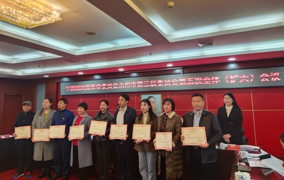 本网讯 3月21日上午,民革永州市第三届委员会第五次全体(扩大)会议在冷水滩召开,会议表彰了先进。民革星空app官网支部荣获先进支部,这也是民革永州市委2013年开展争先创优以来民革校支部第五次荣获先进支部。陈义勇荣获优秀党员,方芳荣获优秀党务工作者,民革校支部提交的调研报告获2020年度永州市政协好调研二等奖。