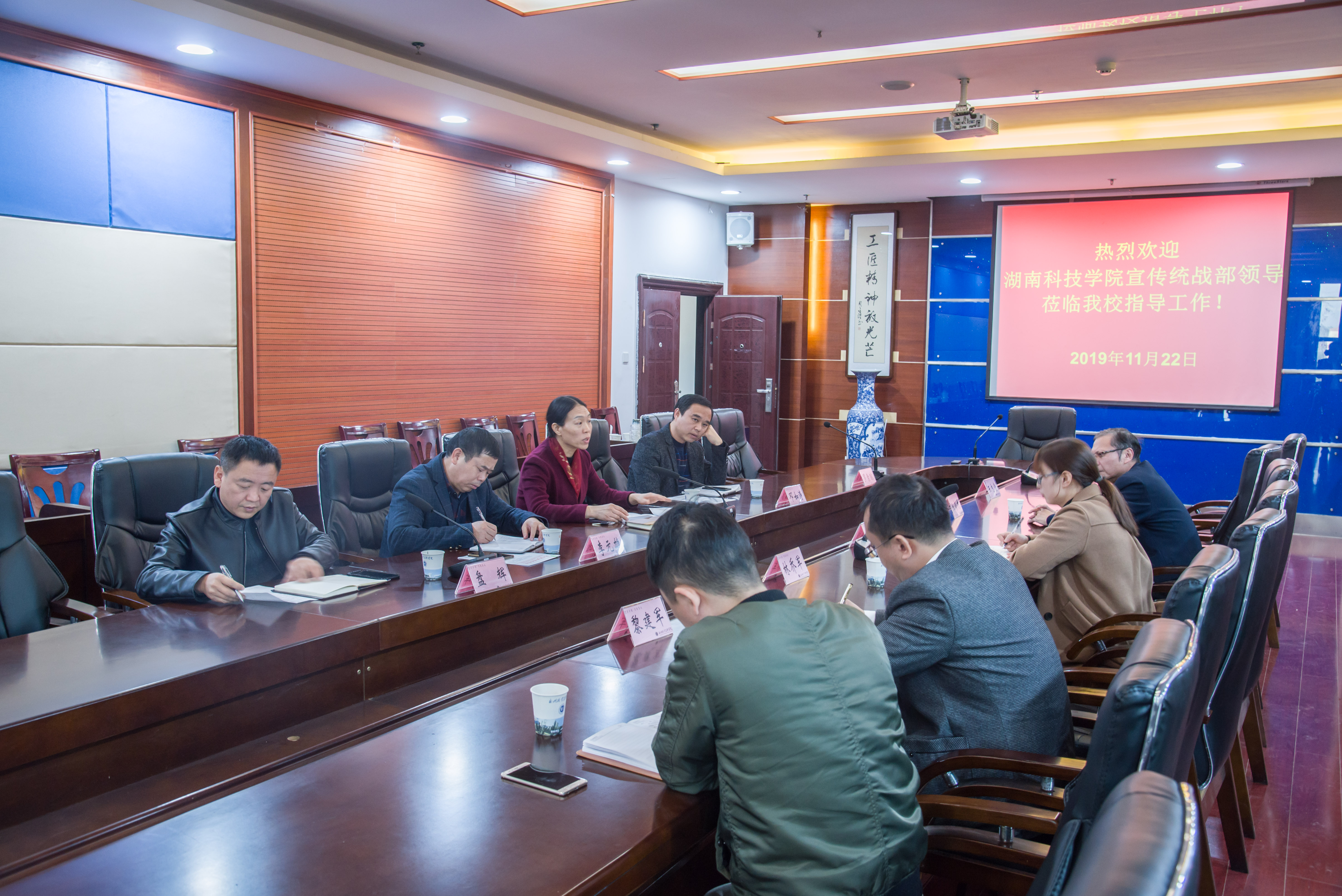11月22日,党委宣传统战部副部长陈玉皎一行5人赴永州职业技术学院交流学习,永州职业技术学院党委委员、宣传统战部部长裴有为及学工部长邓如涛参加交流座谈会。