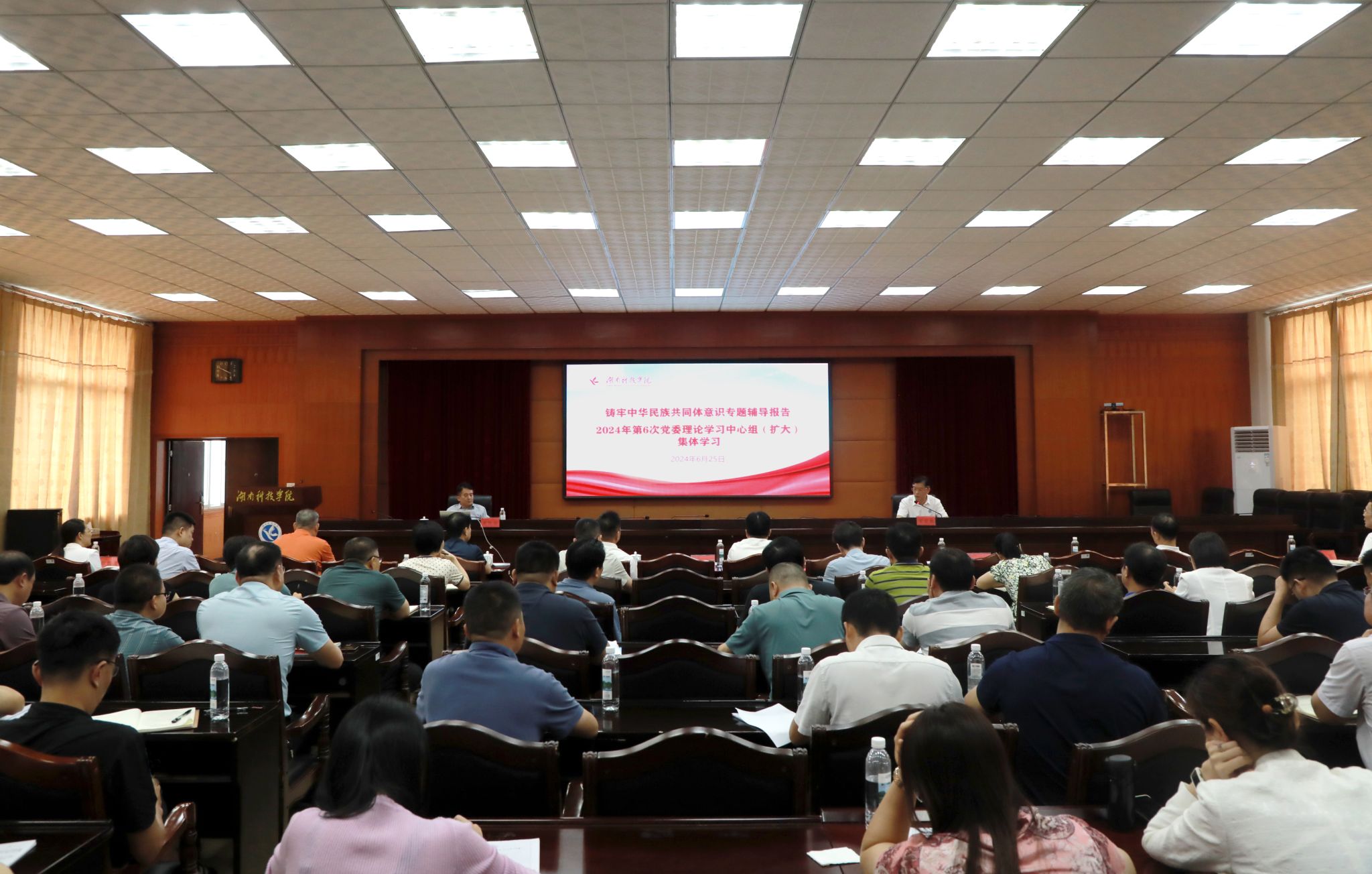 本网讯(记者 向薛峰 谢志豪)6月25日,学校举行党委理论学习中心组(扩大)2024年第6次集体学习暨“铸牢中华民族共同体意识”专题辅导报告会。省教育厅民族教育处处长、一级调研员祁怀好作题为《深入开展学校铸牢中华民族共同体意识教育》的辅导报告。全体在校校领导、全体中层正职、教学学院党总支副书记参加学习,学习由党委副书记宋宏福主持。